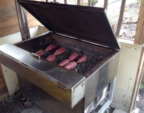 石焼き芋屋の友人のところに電話して、窯を借りたいと伝えた。鬼澤さんから仕入れたシルクスイートを焼くためだ。温まっているのでいつでもどうぞと快く応じてくれた。 友人の窯は薪をくべるタイプの本格石焼き芋だ。 試し焼きとして、LサイズとMサイズを…